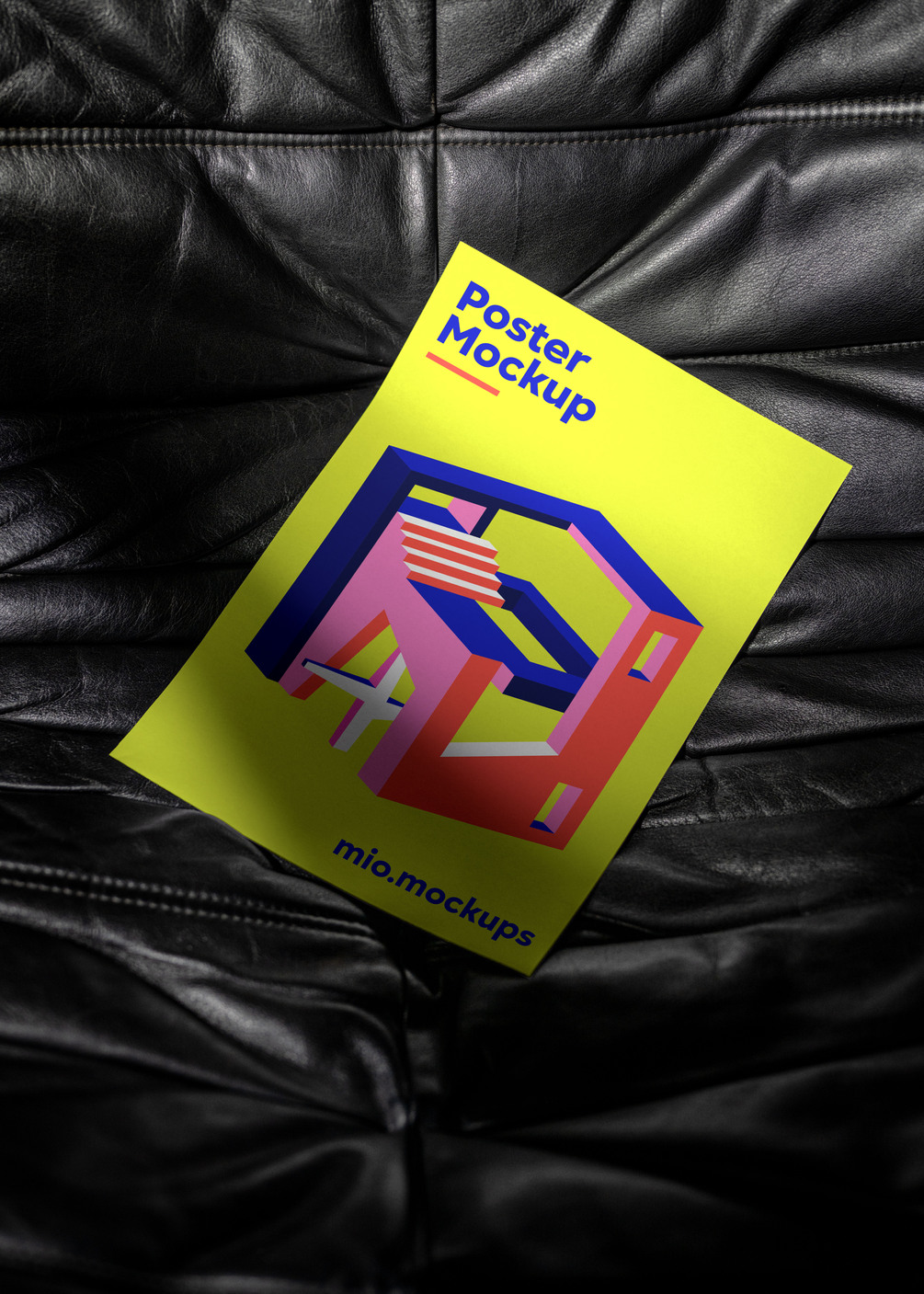High-quality DIN A4 poster mockup, based on a realistic photo.